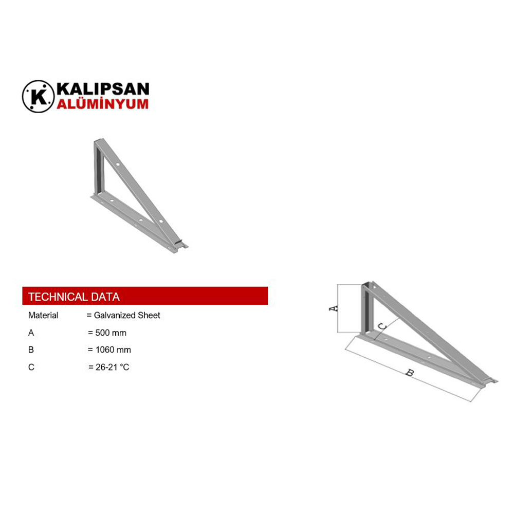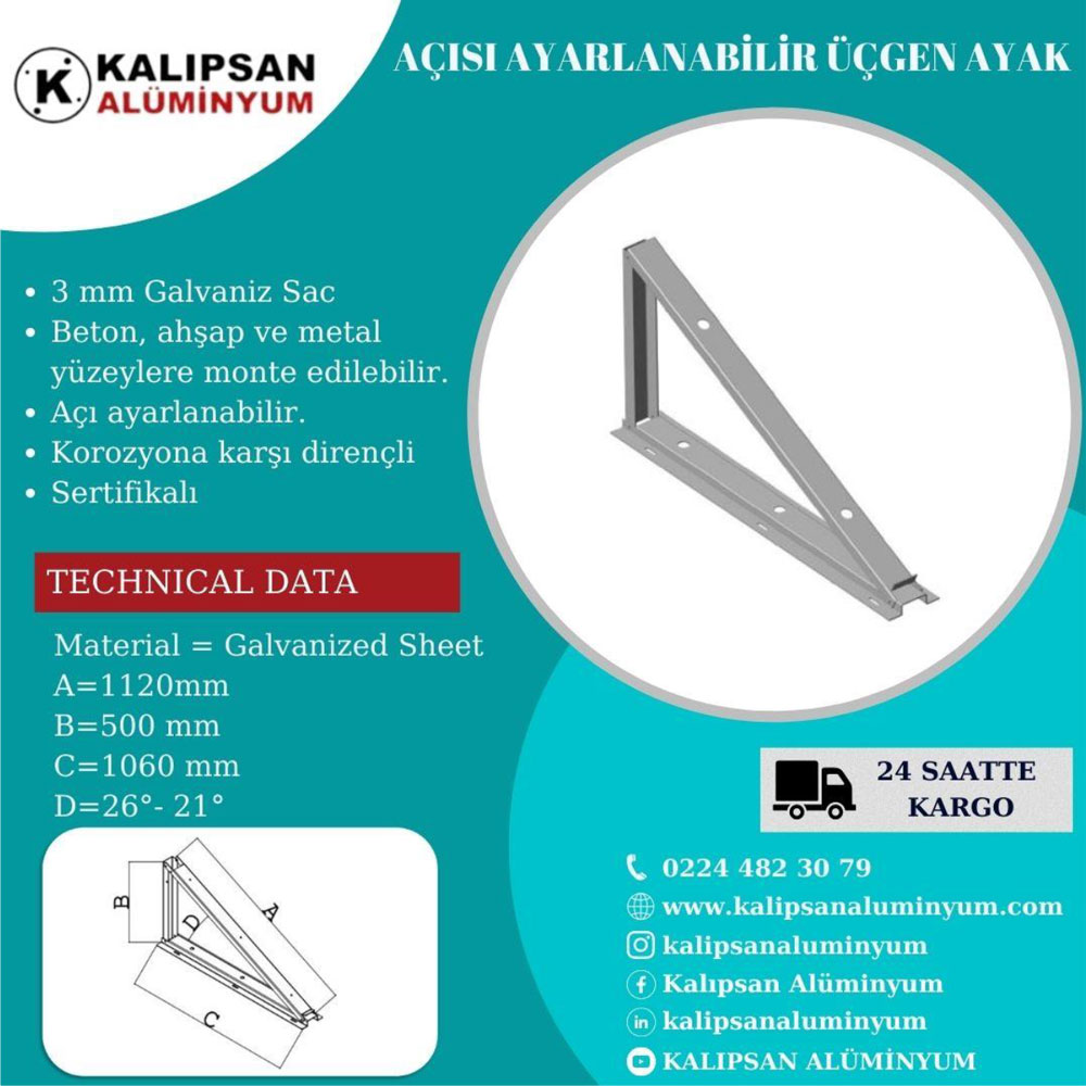 3 mm Galvanized Sheet Can be mounted on concrete, wood and metal surfaces. The angle is adjustable. Resistant to corrosion. Certified